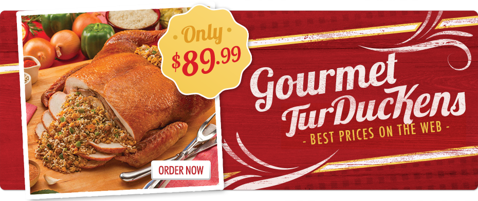 Turducken - Catullo Prime Meats Sale. Regular price. $85.00. Tax included. Impress your guests! Our famous Turduckens consist of boneless Natural Ohio Chicken and All Natural Duck stuffed inside a deliciously tender Catullo's Amish Valley Turkey, with the breast bone removed. The best part? Upon your request, we'll stuff it with one of our delicious homemade stuffings. hebertsmaurice.comHebert's Specialty Meats - Home of Deboned Chicken | Shop ... Sep 07, 2018 · Hebert’s Specialty Meats is home of the original deboned stuffed poultry. Shop Online Now or Call Us 337-893-5062 Reviews | Cajun Ed's Specialty Meats | Turducken | Cajun Food Delivery ... We proudly serve the finest meats (Including our famous Turduckens !)and we have developed the best flavor of seasonings, marinades, and stuffings. Our unique cooking process really makes our meats tender and juicy. It really is the best Cajun around! We strive to provide our customers the best eating experience possible. turducken.comLouisiana Gourmet Turduckens | FREE SHIPPING All our delicious TurDucKens are deboned, then stuffed with one of our savory stuffing recipes. Our TurDucKens put the flavors of Louisiana on your family's dinner table. At turducken.com, we're committed to bringing you the best TurDucKen prices on the web ($119.99), delivered straight to your door anywhere in the USA except Alaska and Hawaii.