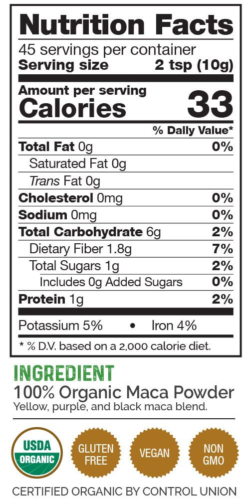 10 Best Maca of 2021 | MSN Guide: Top Brands, Reviews & Prices 6. Maca Root Powder Black - 100% Raw Pure Natural Non-GMO Peruvian Superfood Bulk. 8.4. View Product. 8.4. 7. Terrasoul Superfoods Organic Gelatinized Maca Powder, 16 Oz - Premium Quality | Supports. Ranking the best maca root supplements of 2021 - BodyNutrition Best maca root overall: NaturaLife Organic Maca NaturaLife Organic Maca takes our top spot thanks to its hard-hitting dosage, which makes it great for people looking to elevate their sex drive, boost their libido, or fight sexual dysfunction. The power of this high-dose formulation just can't be beat. What is Maca Powder + How To Use It | Holland & Barrett 1 scoop of vanilla / chocolate / unflavoured protein powder 1 medium banana 1 tablespoon maca powder 2 tsp cacao powder A few ice cubes Method 1 It really couldn't be easier! Simply place all of your ingredients in a blender and blend until nice and smooth. Maca energy bars
