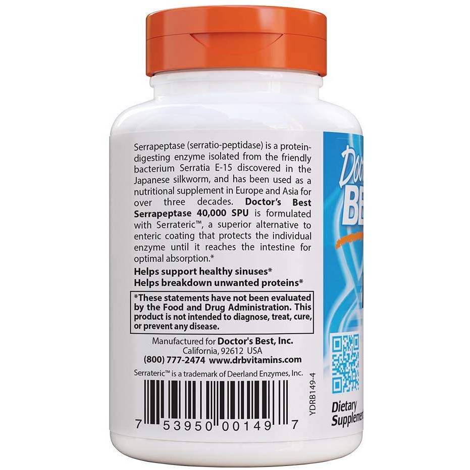 Doctor's Best Best Serrapeptase for sale online | eBay Serrapeptase by Doctor's Best (R) is a protein-digesting enzyme, isolated from the friendly bacterium Serratia E-15 in Japanese silkworms. Serrapeptase has been used as a nutritional supplement in Europe and Asia for nearly three decades.